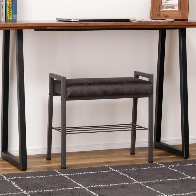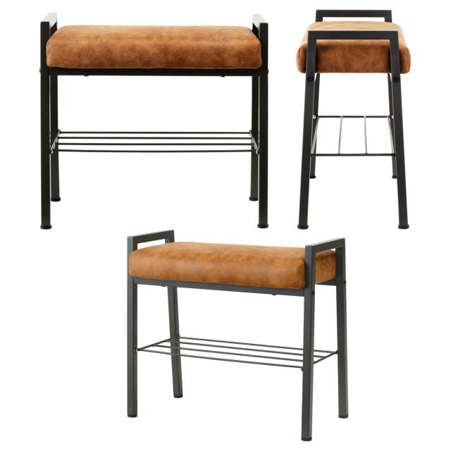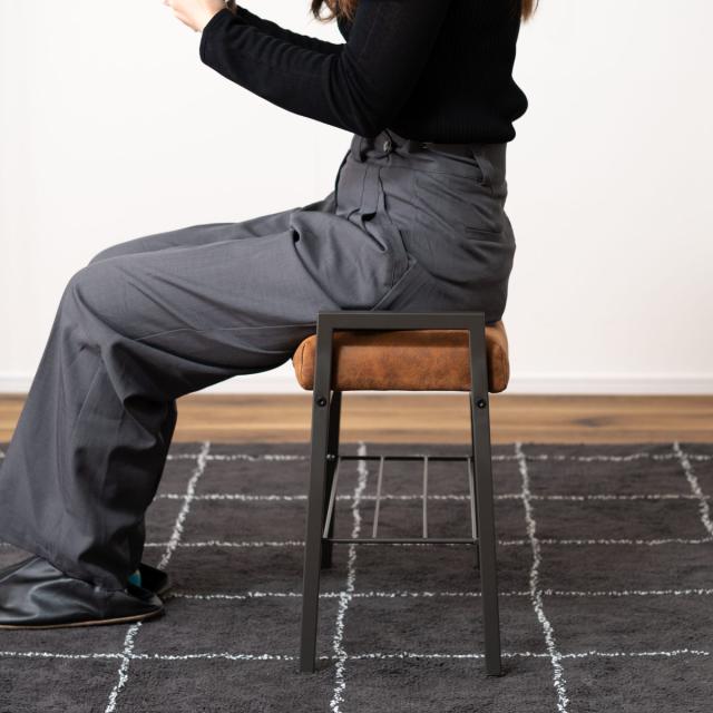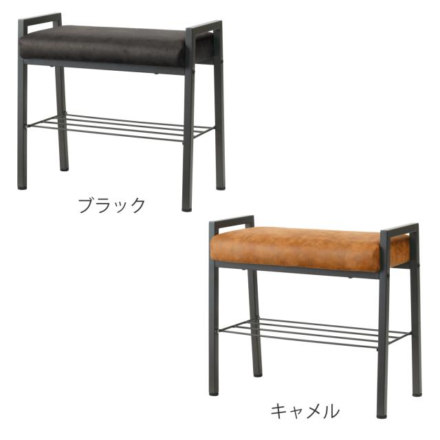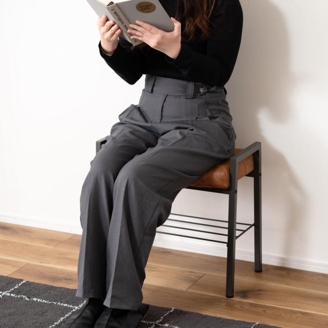 クロスレザー×スチールの棚板付きスツール 幅50cm