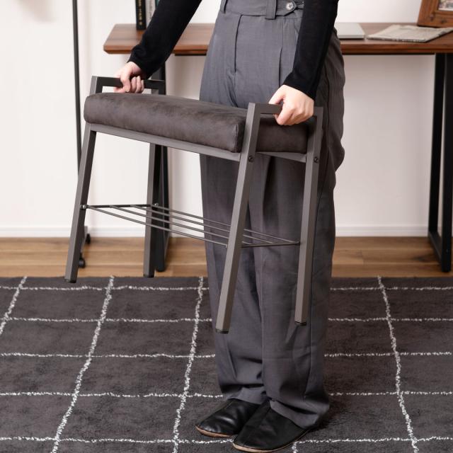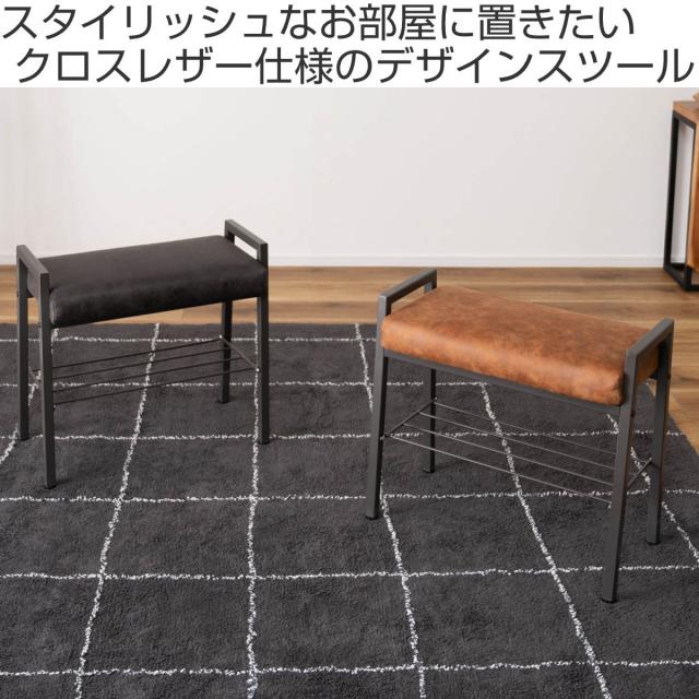 スツール 座面高43cm 幅50cm クロスレザー ( デスクチェア 玄関 椅子 チェア 取っ手付き 収納 棚 レザー調 スチール ビンテージ調 )