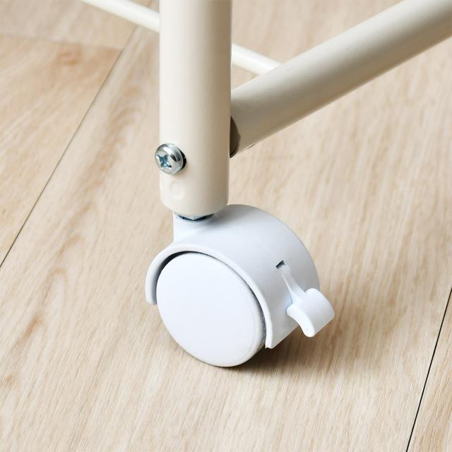 4個のキャスター中2個にストッパーが付いています。少し重い敷布団やマットレスを干す時に動かず安心です。