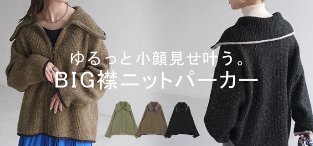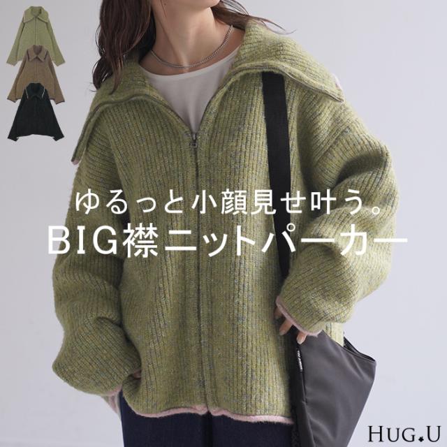 ニット 小顔 「 BIG襟。」 パーカー ニットパーカー アウター レディース ライトアウター トップス セーター ビッグ ドルマン ドルマンスリーブ ゆったり オーバーサイズ 羽織り 体型カバー 大きいサイズ お尻が隠れる 黒 グリーン 秋 冬 HUG.U 秋新作