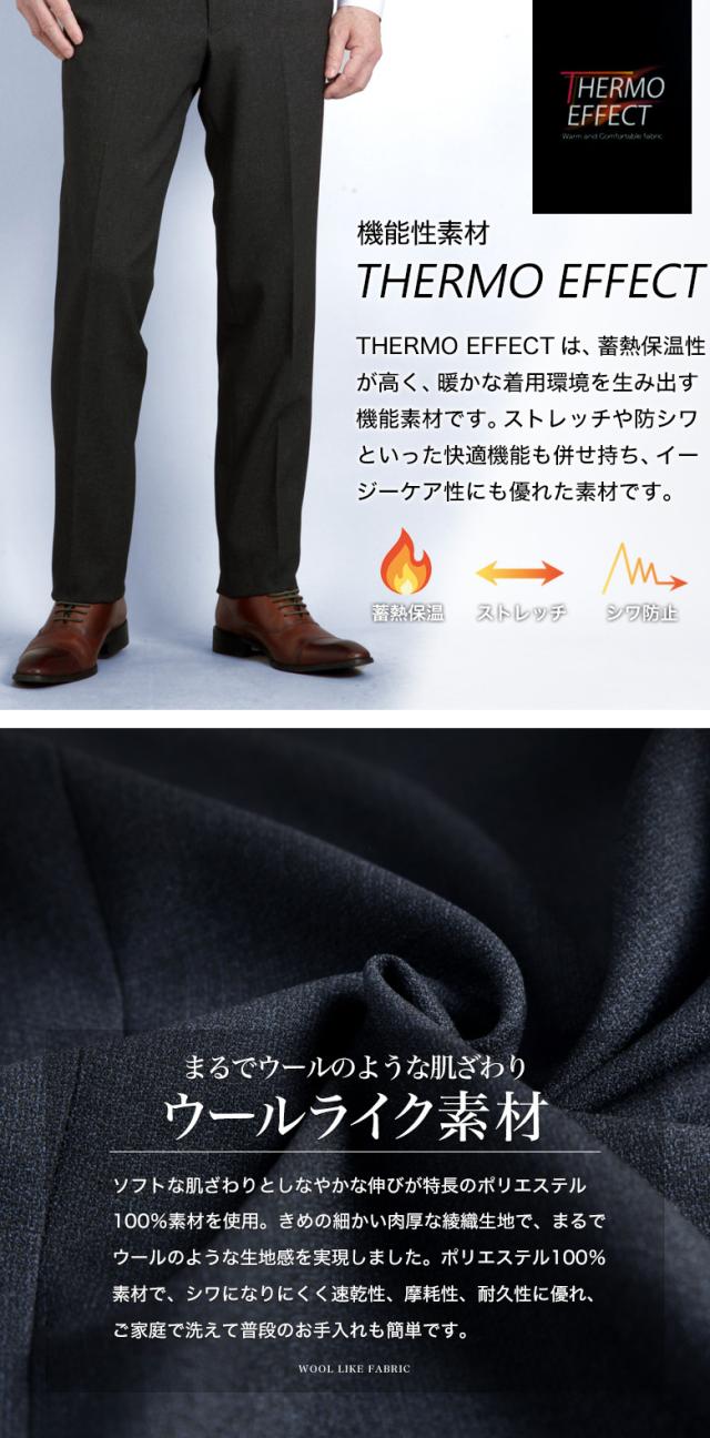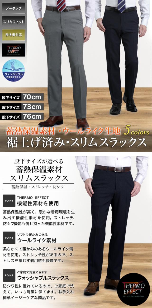 裾上げ済み スラックス ノータック スリム ウールライク 蓄熱保温THERMO EFFECT(サーモエフォクト)ストレッチ 防シワ メンズ ウォッシャブル 洗える 暖かい 秋冬春 スリーシーズン ビジネス ビジカジ カジュアル おしゃれ 40代 50代
