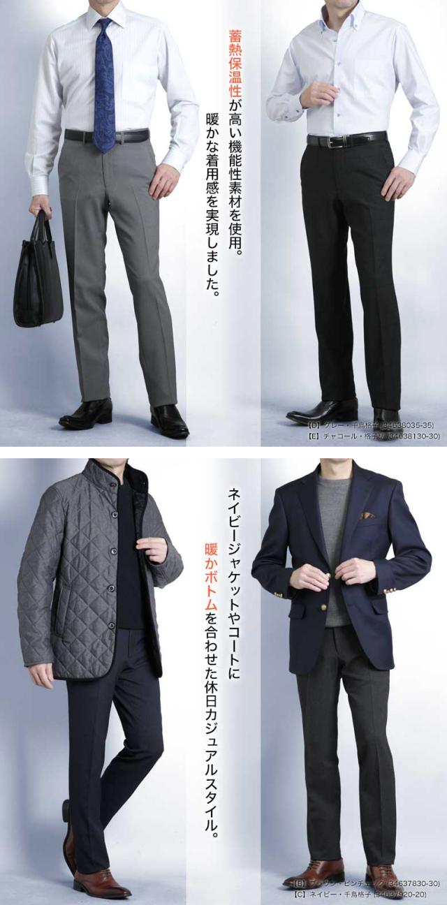 | 【蓄熱保温素材・スリムスラックス】 股下サイズ70・73・76cmから選ぶことができ、裾上げをする手間がなく、届いてすぐに着られます。蓄熱保温性が高く、暖かな着用環境を生み出す機能性素材「THERMO EFFECT」を使用したスラックス。ソフト暖かみのあるウールライク素材を使用しています。ストレッチ性があり、ストレスを感じず着用感も快適です。防シワ性に優れているので、ご家庭で洗えていつも清潔に保てます。お手入れ簡単イージーケアな商品です。 |