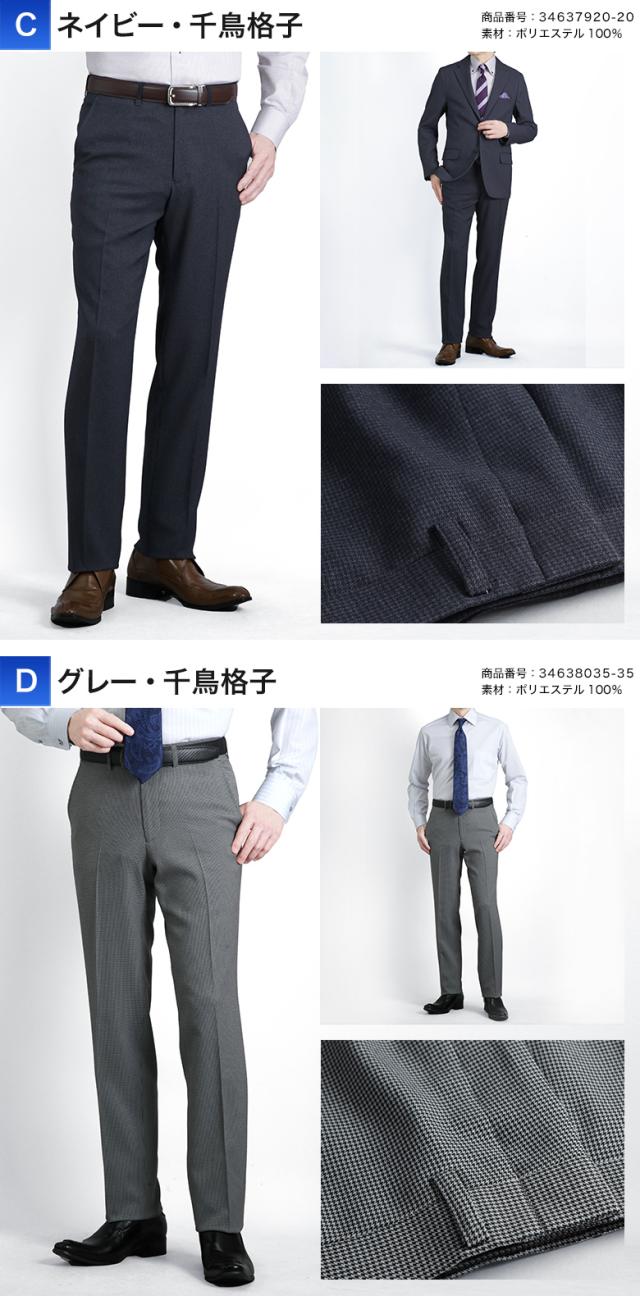 | 【A】ネイビー・ピンチェック(34637721-21) 【B】ブラウン・ピンチェック(34637830-30) 【C】ネイビー・千鳥格子(34637920-20) 【D】グレー・千鳥格子(34638035-35) 【E】チャコール・格子柄(34638130-30) |