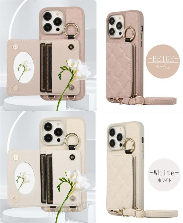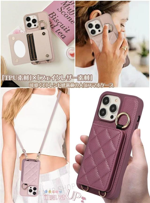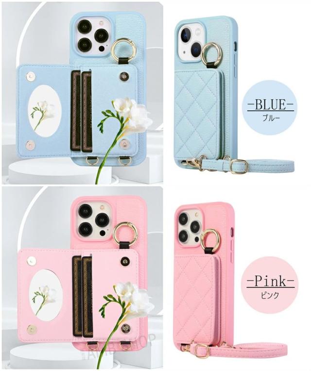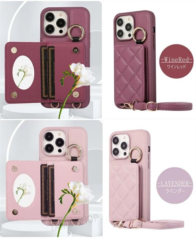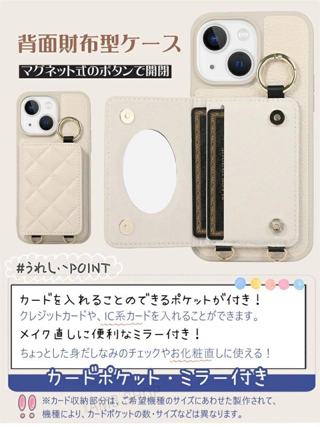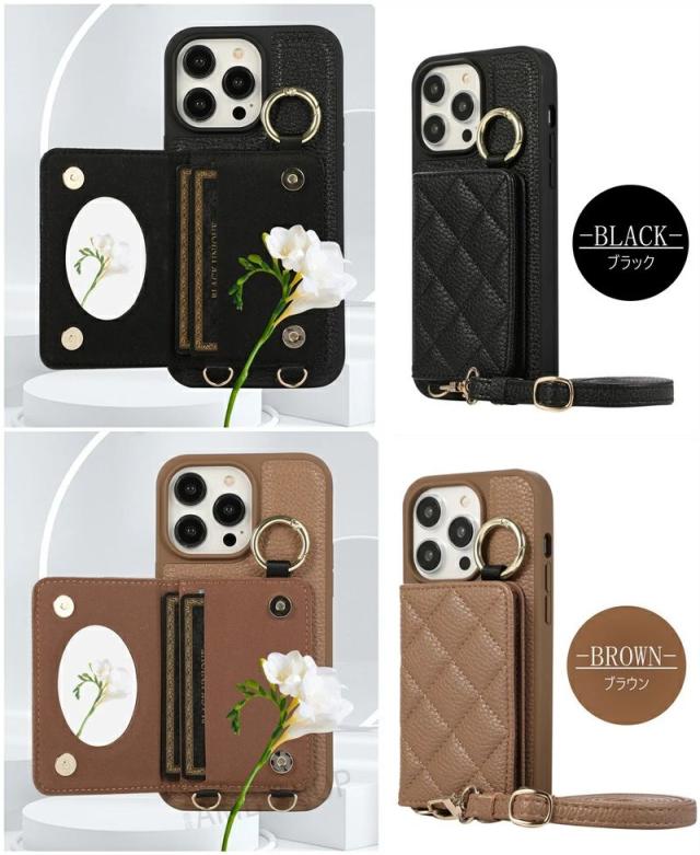 【新品】iPhone16 ケース ショルダー タイプ スマホケース ミラー付き スマホショルダー iPhone15 14pro Max 14plus 携帯ケース 鏡付き カードホルダー 肩掛け iphone13 pro iphone12 iphone16 Pro Max 背面手帳型ケース 鏡 背面カード 収納 韓国 ストラップケース