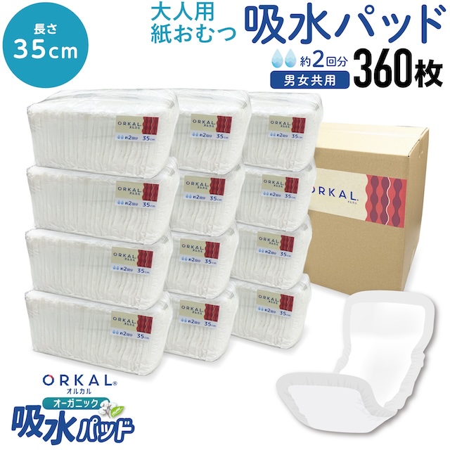 オルカル オーガニック 吸水パッド 大人用 尿取りパッド 薄型 オーガニックコットン 2回吸収 35cm 【送料無料】 紙おむつ 紙パンツ