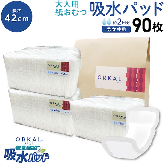 オルカル オーガニック 吸水パッド 大人用 尿取りパッド 薄型 オーガニックコットン 2回吸収 42cm 【送料無料】 紙おむつ 紙パンツ