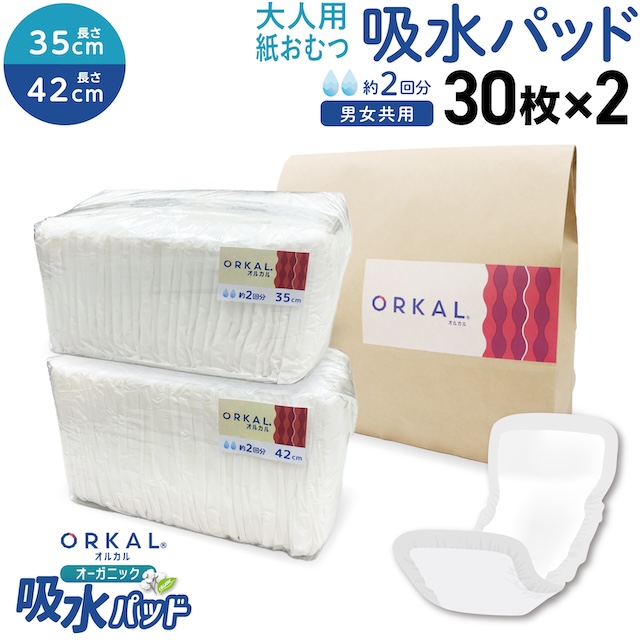 オルカル オーガニック 吸水パッド 大人用 尿取り 薄型 オーガニックコットン 2回吸収 【メール便不可】 紙おむつ 紙パンツ