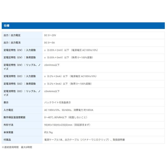 ・直流電圧0〜20V、直流電流0〜5A