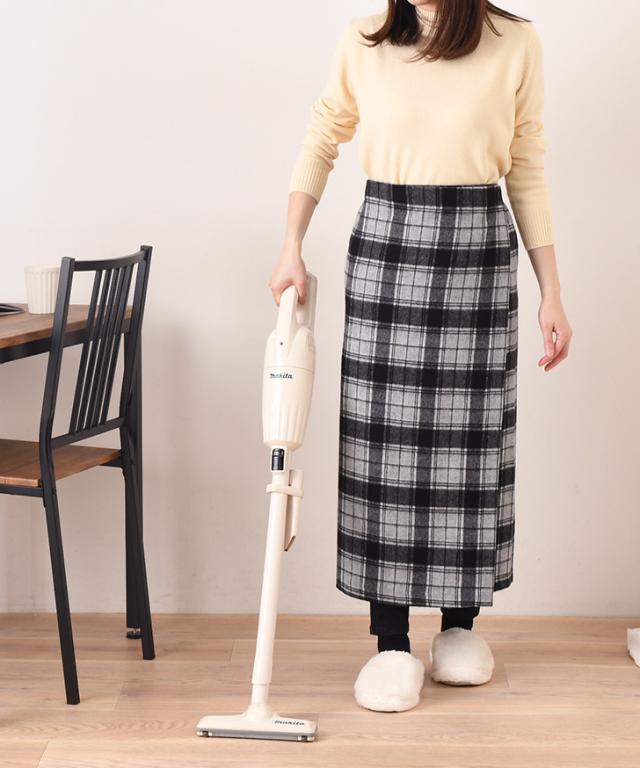 ●安心の日本製!ブランケットにもなるウール混巻きスカート