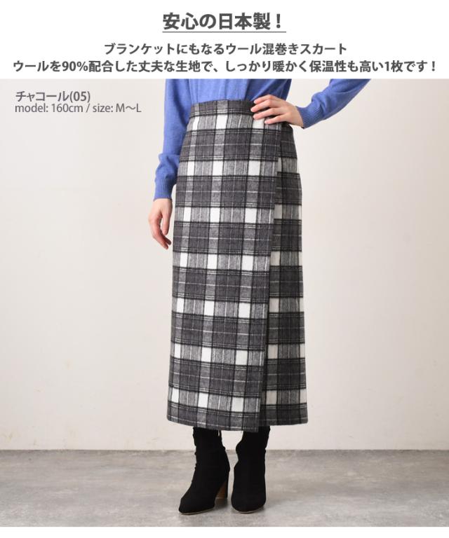 新作 【日本製】ウール90%配合!チェック柄ロング丈巻きスカート レディース ボトムス 防寒 ラップスカート 秋冬 レイヤード 膝下 暖かい あったか ブランケット ひざ掛け 薄手 大判 大きい おしゃれ かわいい