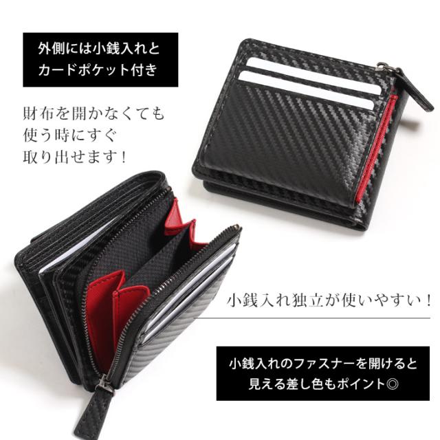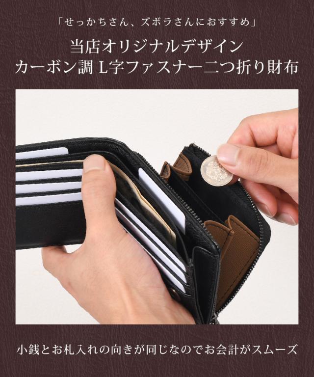 新作 カーボン調 メンズ L字ファスナー 二つ折り財布 財布 二つ折り 小銭入れ 外側 コンパクト 大容量 札入れ 仕切り コインケース カード入れ カードケース 小さめ 多収納 ウォレット かっこいい