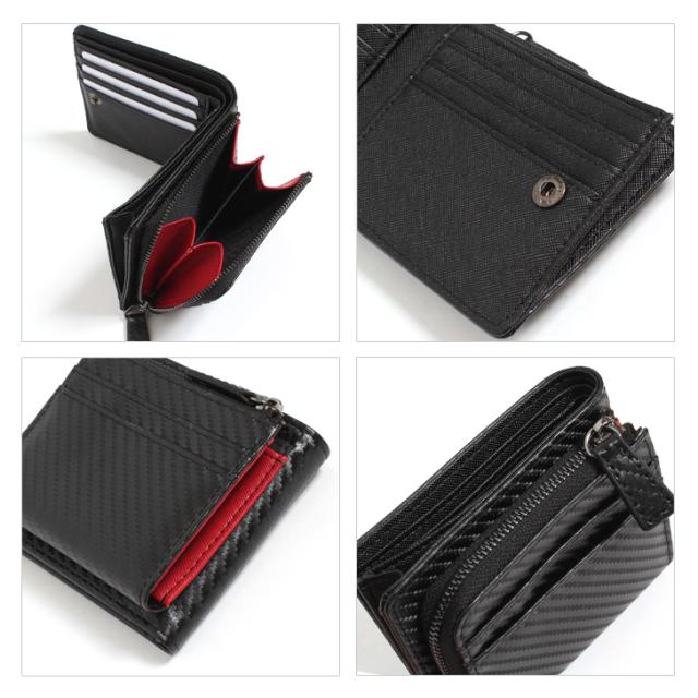 新作 カーボン調 メンズ L字ファスナー 二つ折り財布 財布 二つ折り 小銭入れ 外側 コンパクト 大容量 札入れ 仕切り コインケース カード入れ カードケース 小さめ 多収納 ウォレット かっこいい