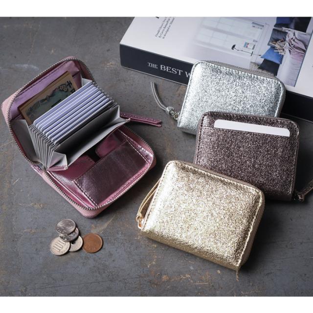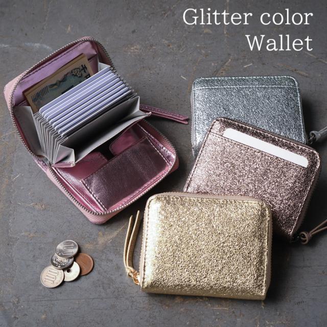 新作 グリッターカラー ファスナー ジャバラカードウォレット レディース 財布 コンパクト ウォレット カード入れ 小銭入れ お札 通す キラキラ ラメ おしゃれ かわいい 多収納 お札が折れない 二つ折り