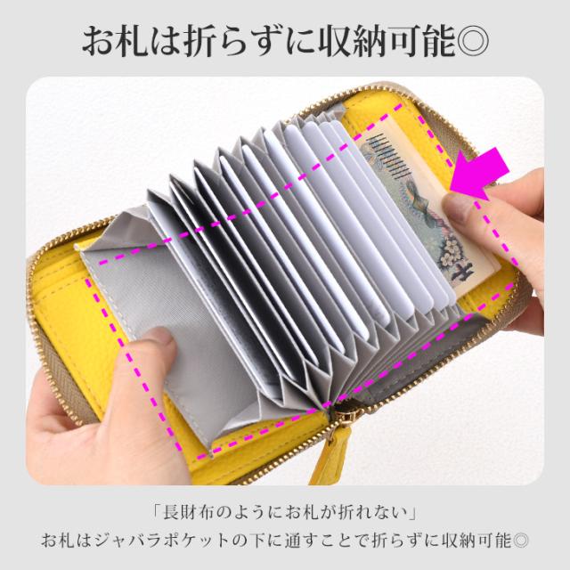お札はジャバラポケットの下に通すことで折らずに収納可能◎