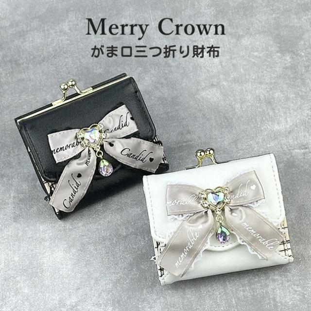 キッズ 財布 女の子 三つ折り財布 mfe-305 Merry Crown メリークラウン リボン天使 ミニ口金財布 三つ折り財布 がま口財布 ミニ財布 コンパクト財布 さいふ かわいい おしゃれ 女の子 女子 ガールズ 小学生 中学生 小学校 低学年 高学年 通学 通塾 ブラック アイボリー