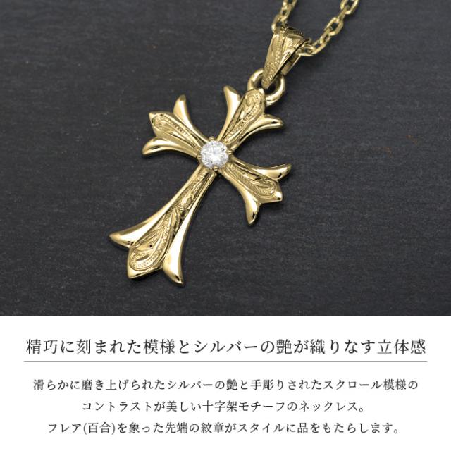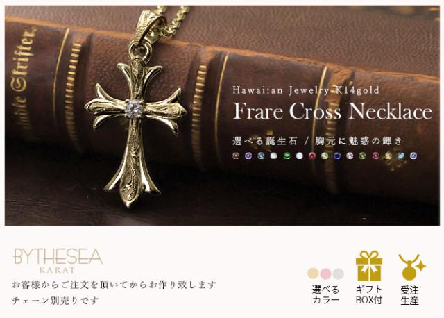 ハワイアンジュエリー ネックレス 刻印 無料 誕生石選べる フレア百合クロス K14ゴールド 14K 金 イエロー ピンク ホワイト 選べる チェーン別売り シンプル 受注生産 BY THE SEA ヴァージンネックレス 彼女 妻 女性 レディース 誕生日 【品番:GSP321】