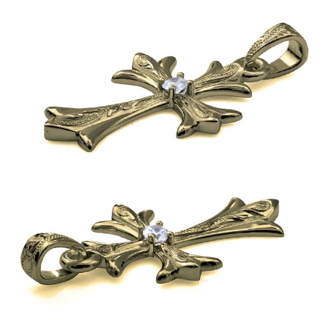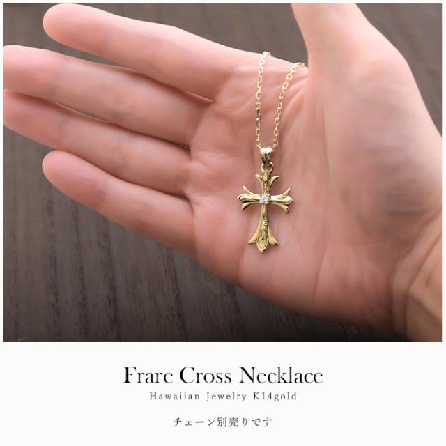 ハワイアンジュエリー フレア百合クロスK14 ペンダントトップ(チェーン別売)