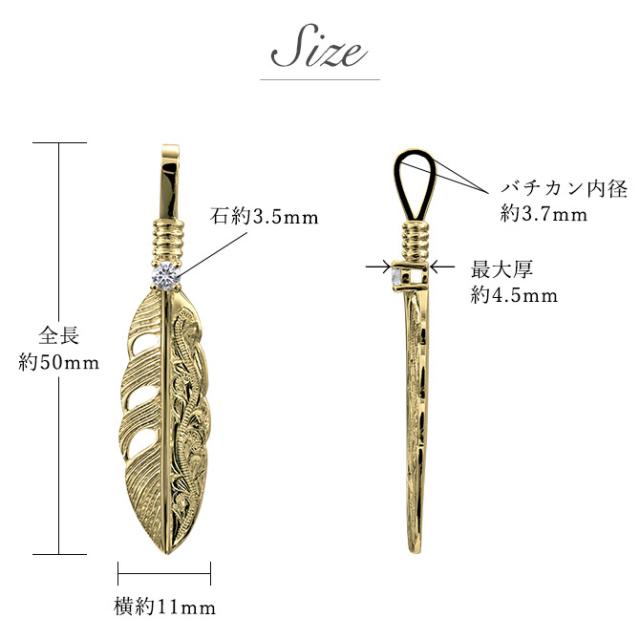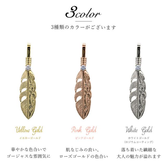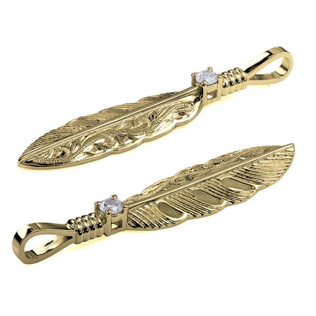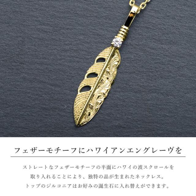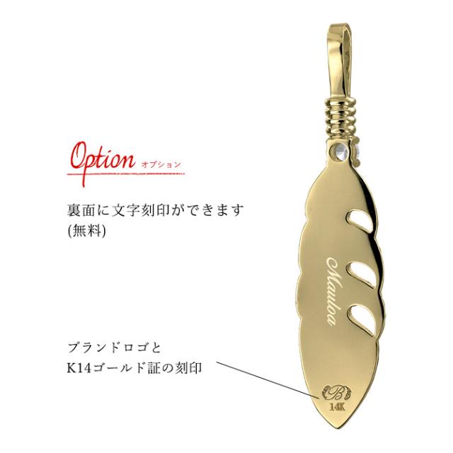 ハワイアンジュエリー ネックレス 刻印 無料 誕生石入替可 羽根 羽 フェザー 翼 K14ゴールド 14K 金 イエローゴールド ピンクゴールド ホワイトゴールド 選べる チェーン別売り ネイティブ 受注生産 BY THE SEA ヴァージンネックレス 【品番:GSP324】
