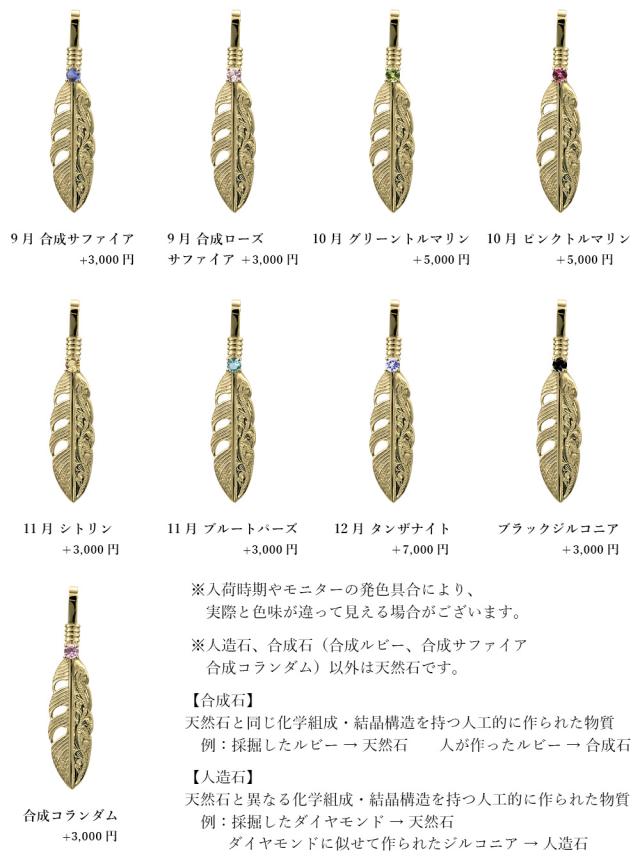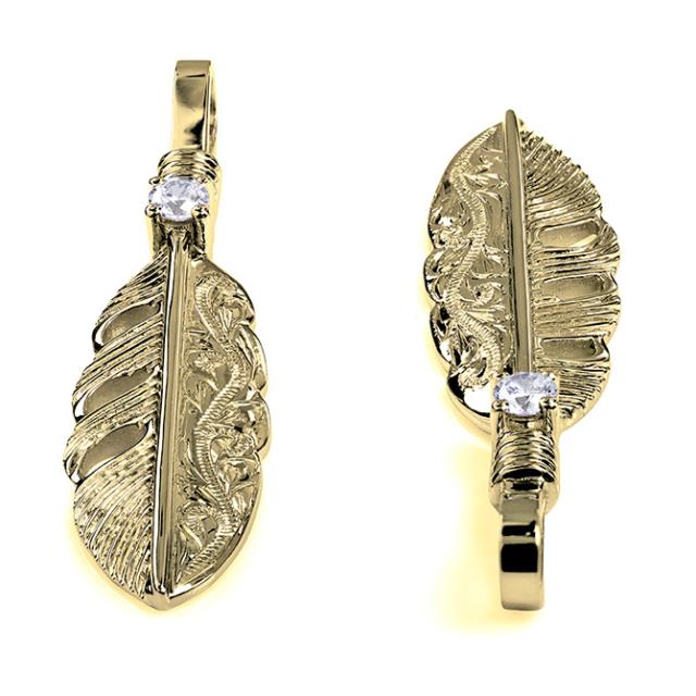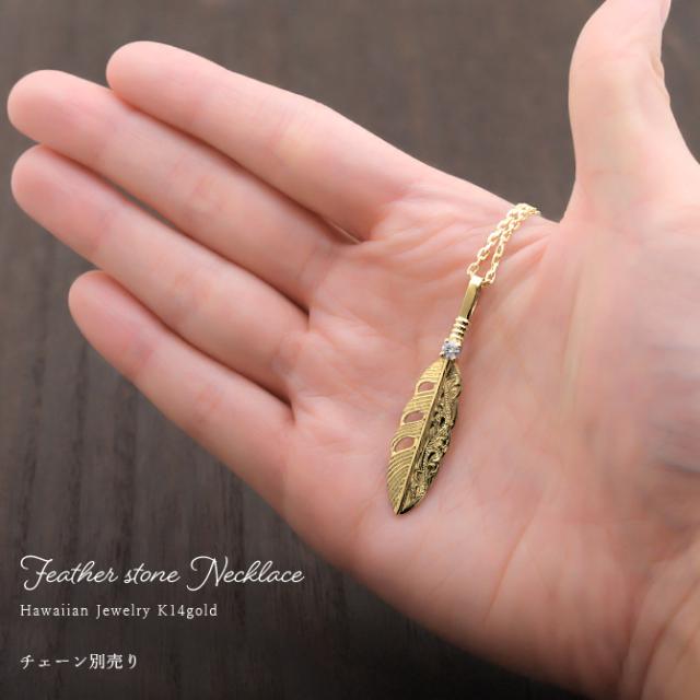 ハワイアンジュエリー カラーストーン フェザー K14 ペンダントトップ(チェーン別売)