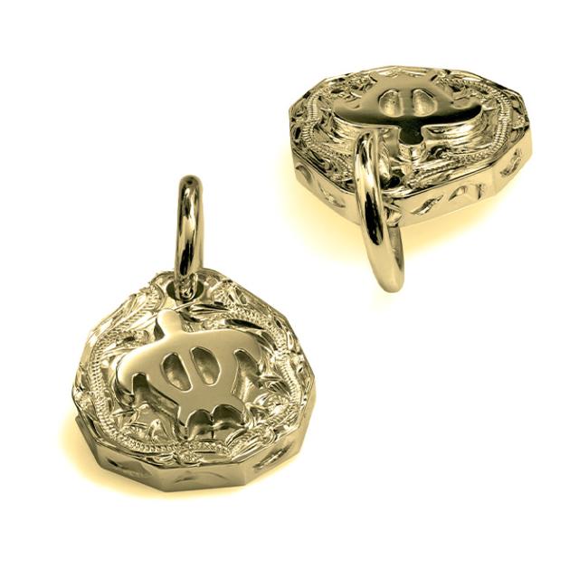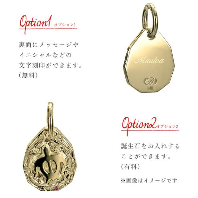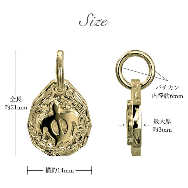 ハワイアンジュエリー ホヌ ネックレス 刻印 無料 誕生石入れ可 浮彫りホヌ Sサイズ シンプル お守り K14ゴールド 14K 金 イエロー ピンク ホワイト チェーン別売り ペンダントヘッド 受注生産 BY THE SEA ヴァージンネックレス 【品番:GSP325S】