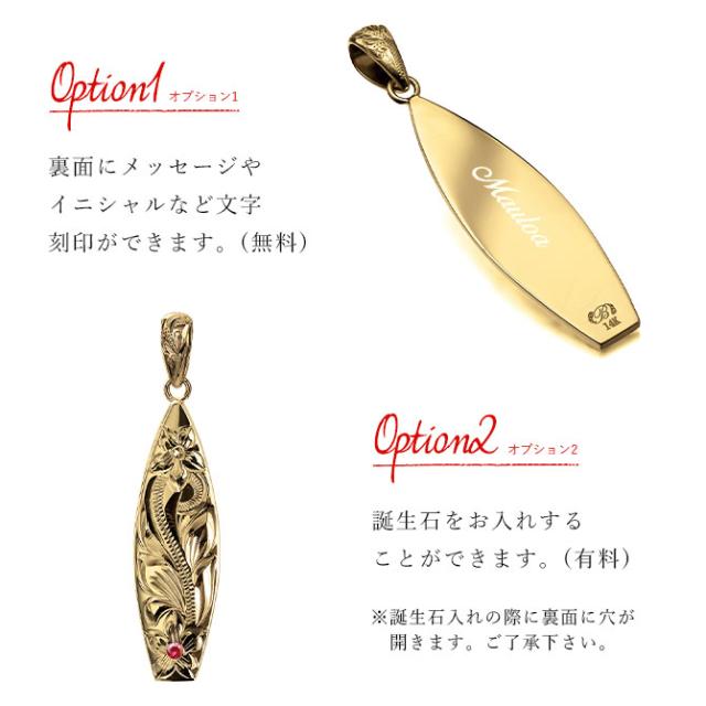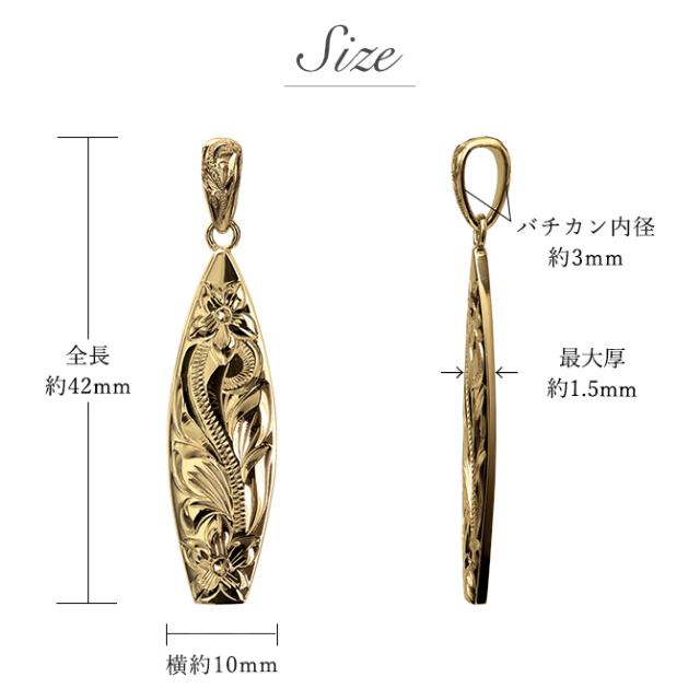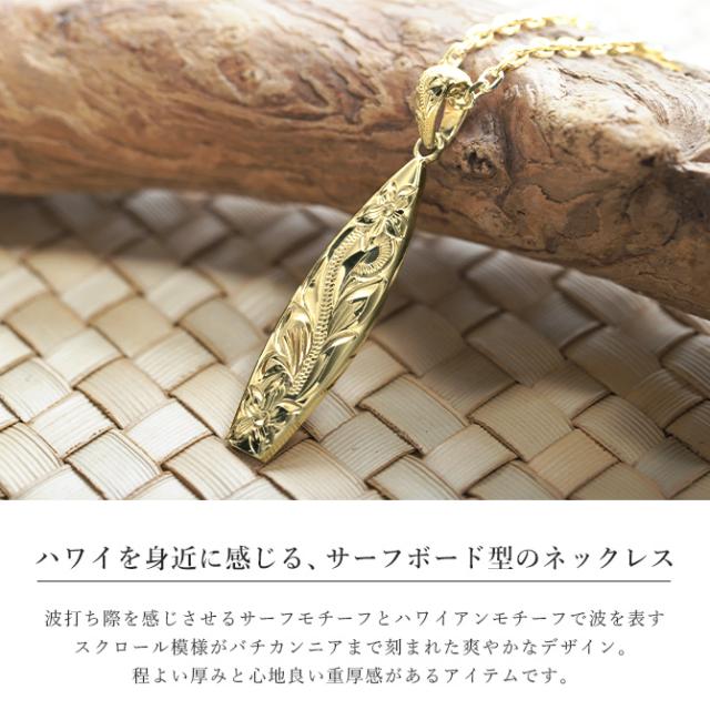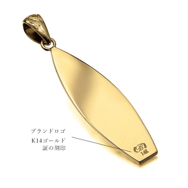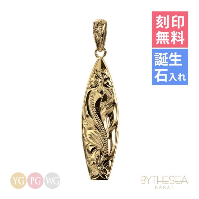 ハワイアンジュエリー ゴールド ネックレス 刻印 無料 誕生石入れ可 サーフボード バチカン彫模様 K14ゴールド 14K 金 チェーン別売 BY THE SEA ヴァージンネックレス ホワイトデー 卒業式 入学式 【品番:SP326】