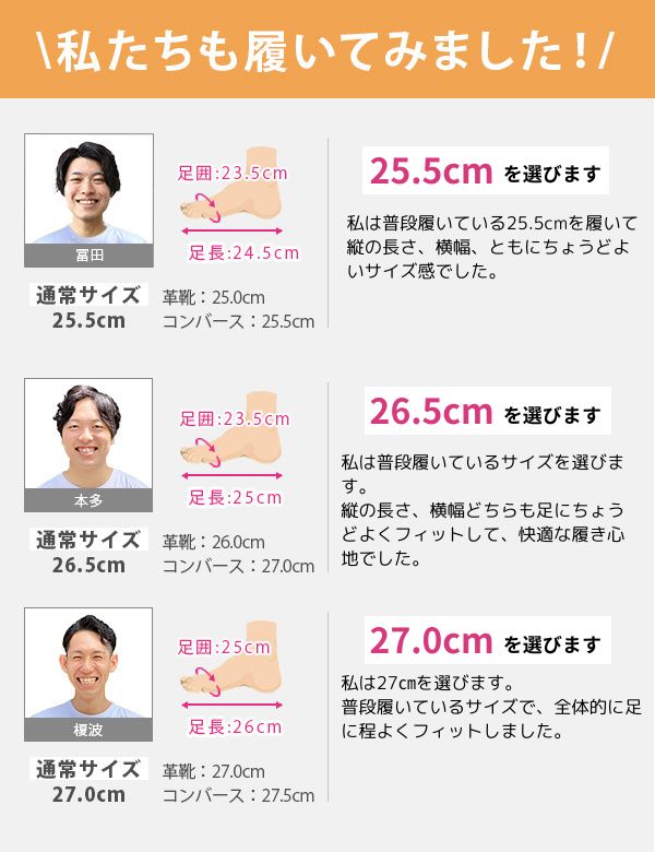 取り扱いサイズ:25cm 25.5cm 26cm 26.5cm 27cm 28cm