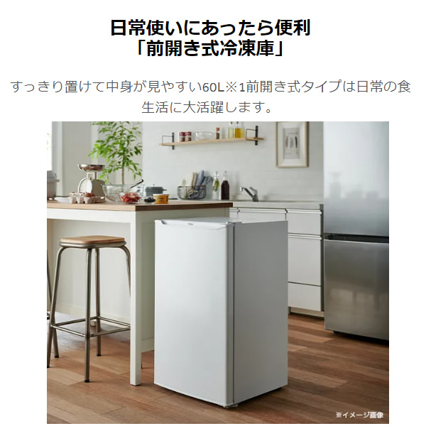 [予約]冷凍庫 小型 家庭用 ハイアール 60L 1ドア 右開き 前開き 直冷式 ホワイト JF-U6A-W 省エネ 急冷凍 スリム