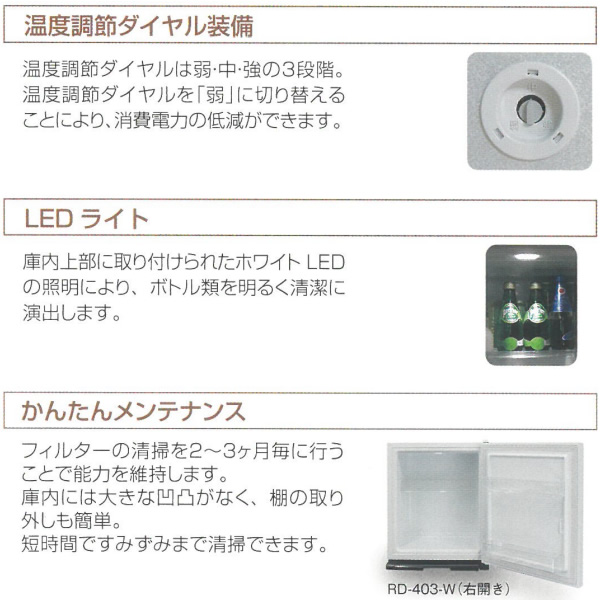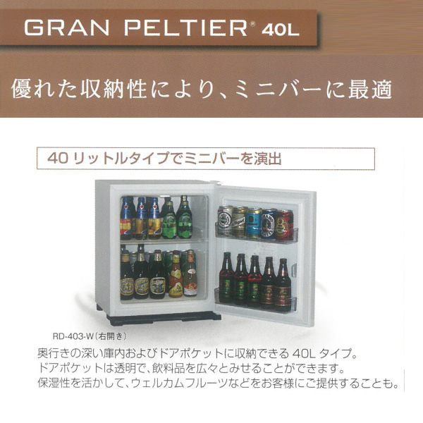 冷蔵庫 三菱電機 業務用 電子冷蔵庫 40L 左開き グラン・ペルチェ ペルチェ式 木目調(ダークブラウン) RD-403-LM