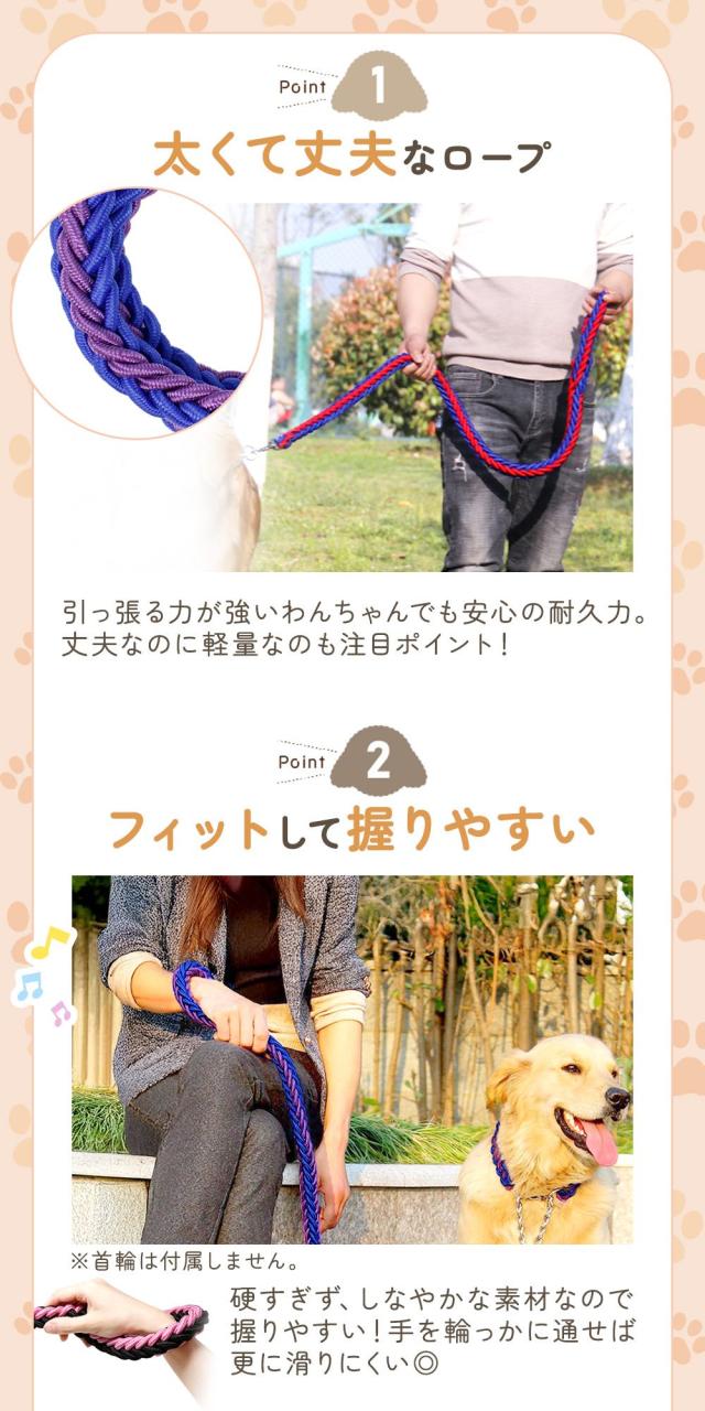 犬用 ロープリード 丈夫 リード 大型犬 おしゃれ 太め 中型 中型犬 大型 子犬 ロープタイプ ドッグリード 散歩 お出かけ トレーニング 頑丈 ストラップ 散歩用リード カラフル ナスカン 握りやすい 軽量 柔らか 定番 長い 手が痛くない 持ち手 持ちやすい MILASIC TN-DRPL