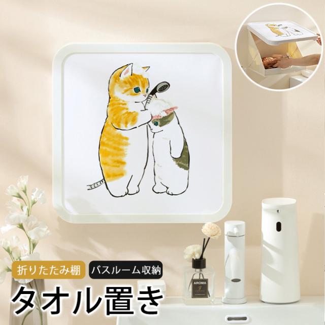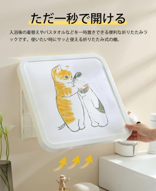 収納でき飾り絵 折り畳みバスルームタオル置き お風呂収納 タオル収納 棚 おしゃれ 壁収納 猫 洗面所収納 タオルラック 着替え 省スペース