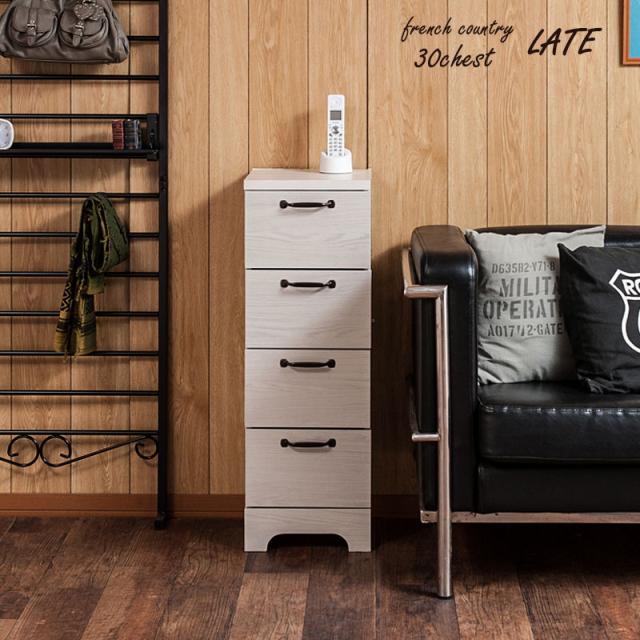 カントリー風 可愛い ダイニング キッチン収納 カウンター下収納チェスト 幅30 ホワイト色