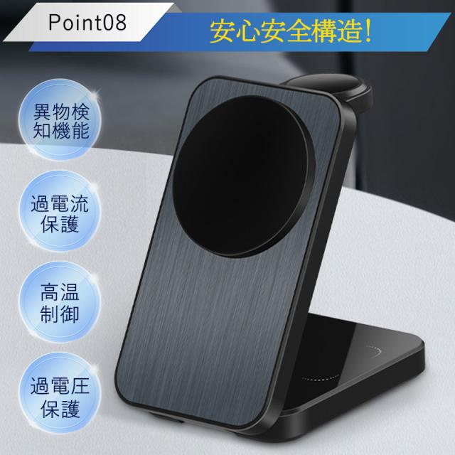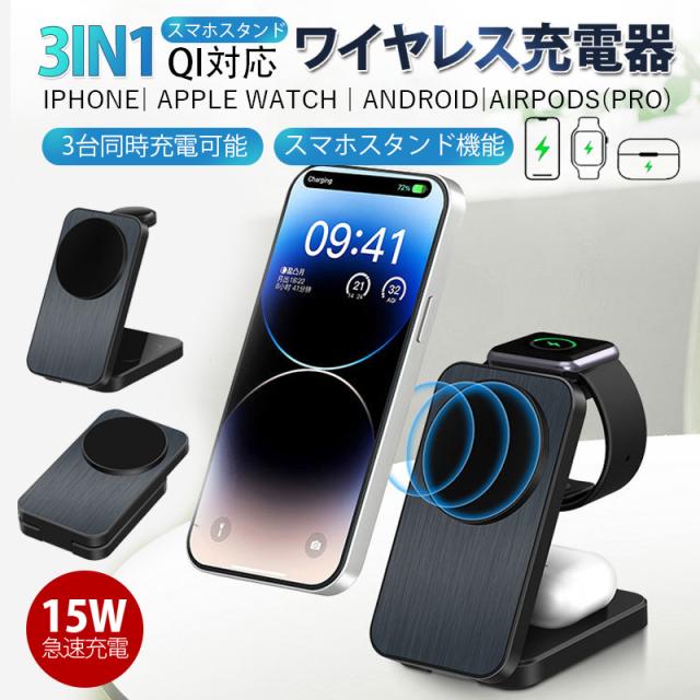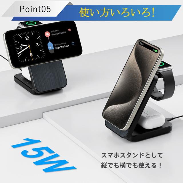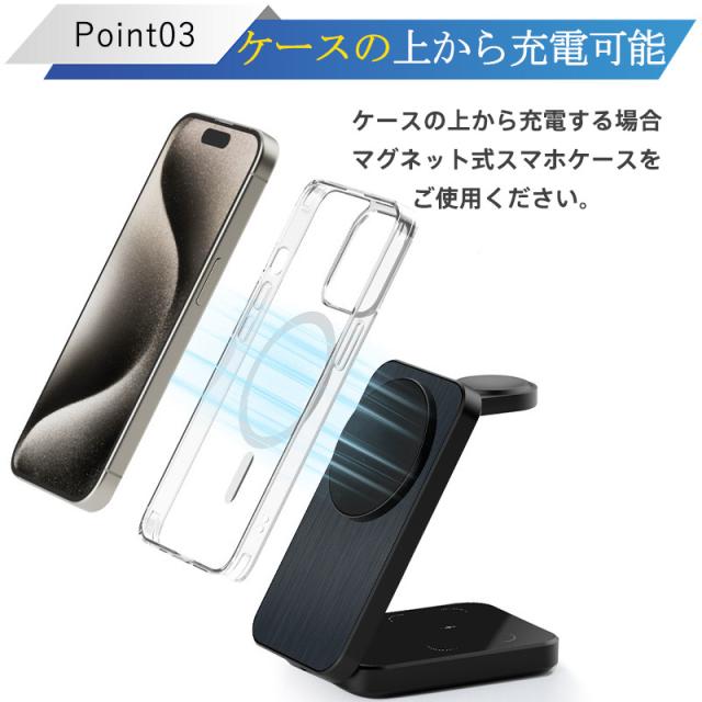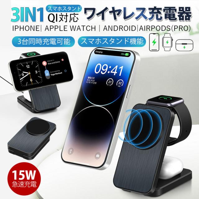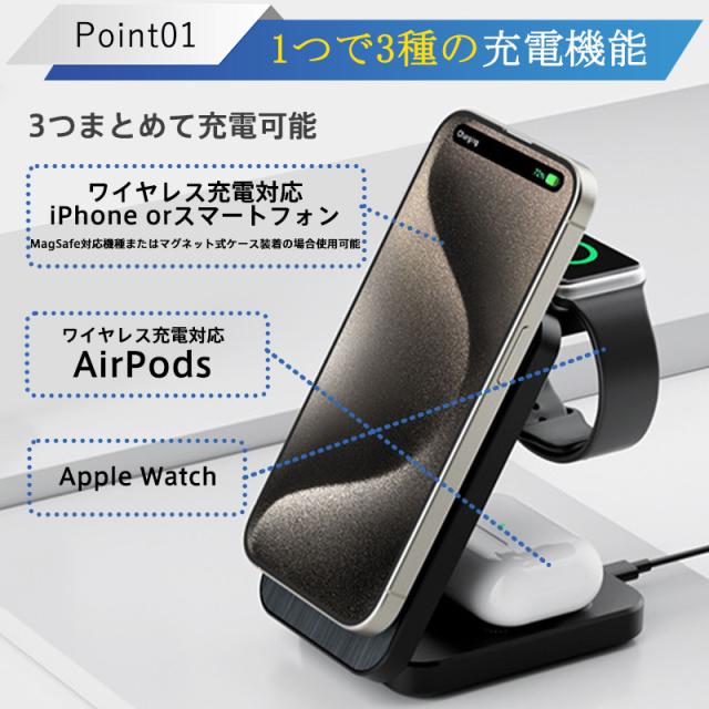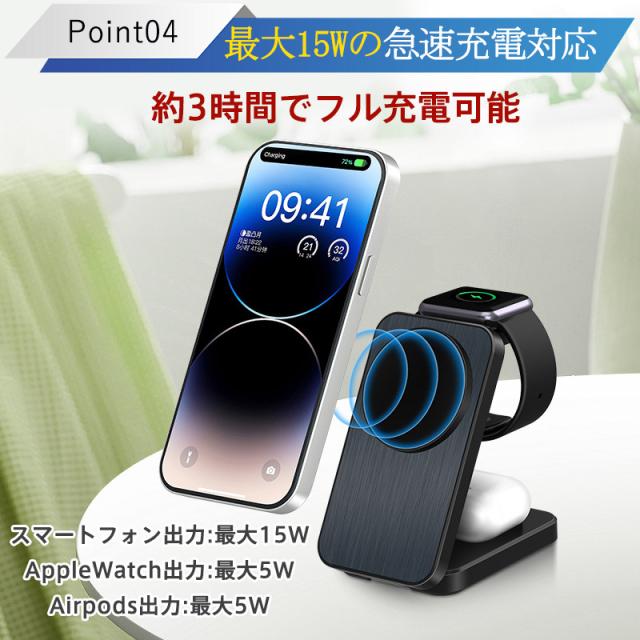 ワイヤレス充電器 3in1 MagSafe 充電器 iphone充電器 アップルウォッチ充電器 置くだけ 急速充電 充電スタンド