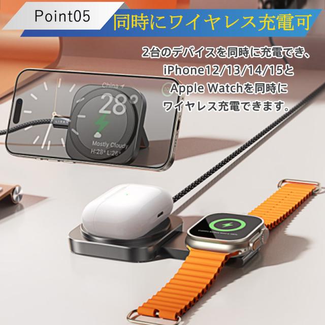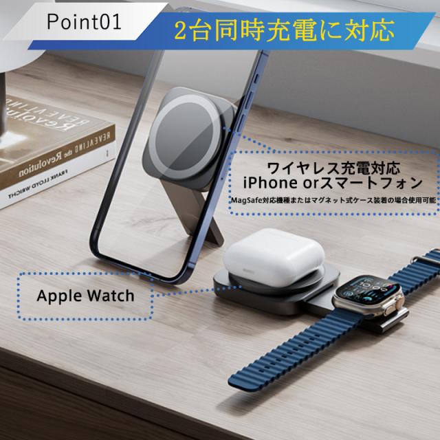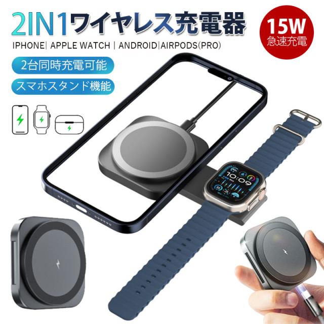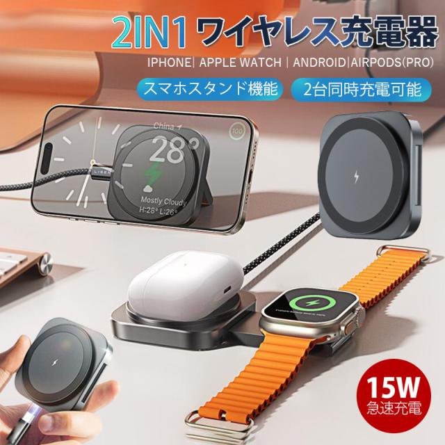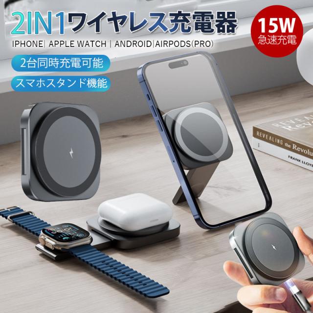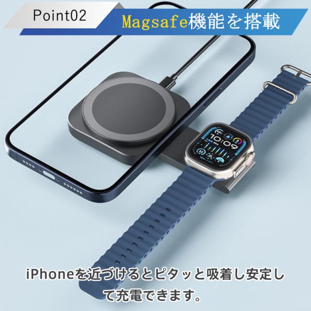 ワイヤレス充電器 2in1 MagSafe 充電器 iphone充電器 アップルウォッチ充電器 置くだけ 急速充電 充電スタンド