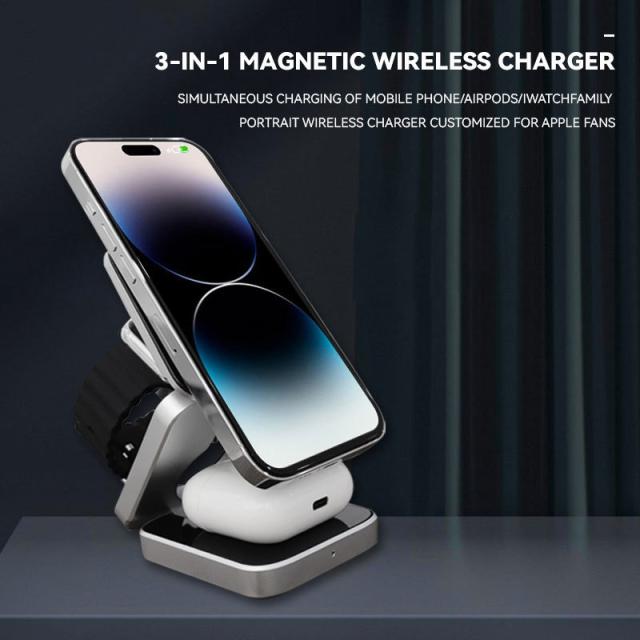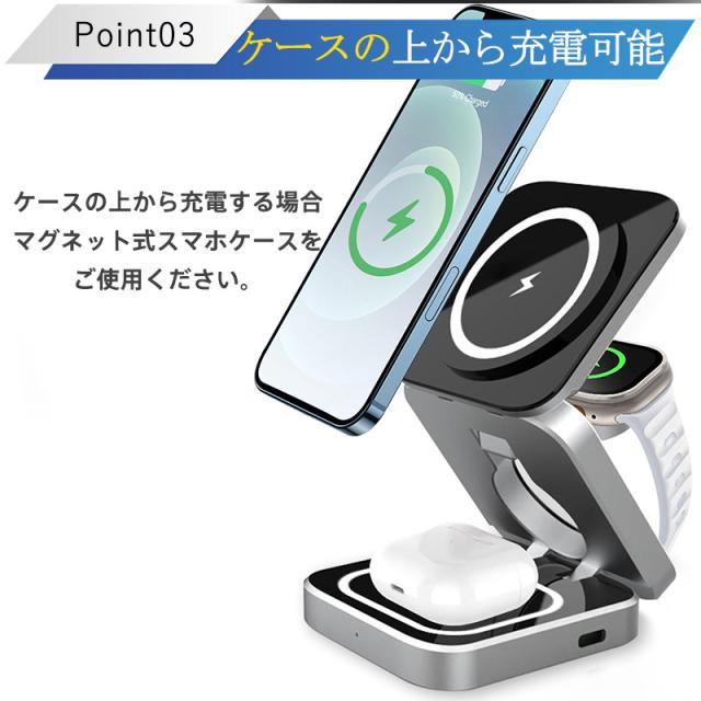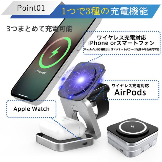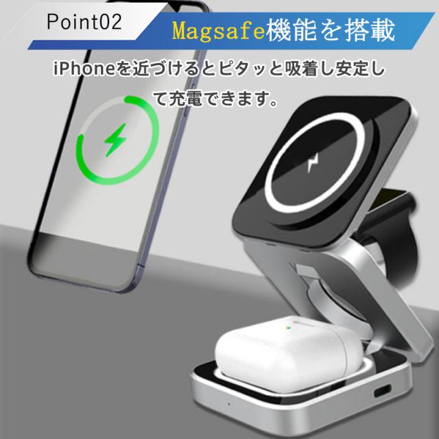 ワイヤレス充電器 3in1 MagSafe充電器 折り畳み式 マグネット式 iphone アップルウォッチ充電器 置くだけ 急速充