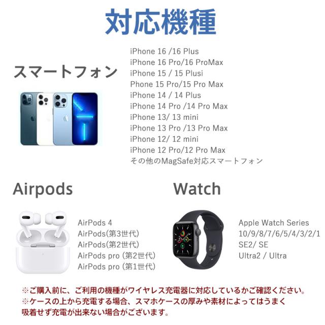 ◇最新型iPhone、Airpods、Apple Watch 3台同時充電でき、