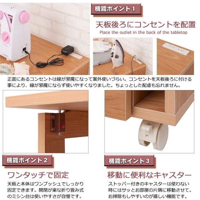 カントリー風 可愛い キャスター付 ワゴン 折りたたみテーブル ミシン台ワゴン