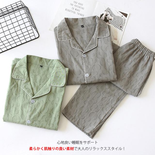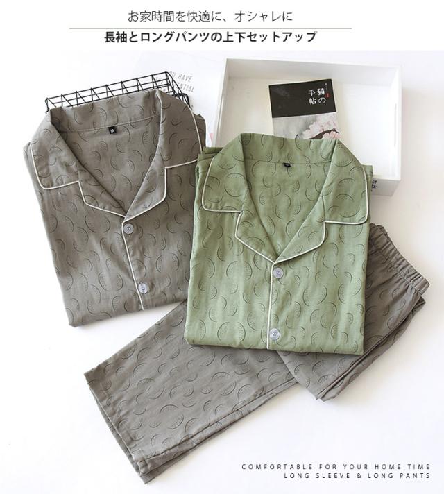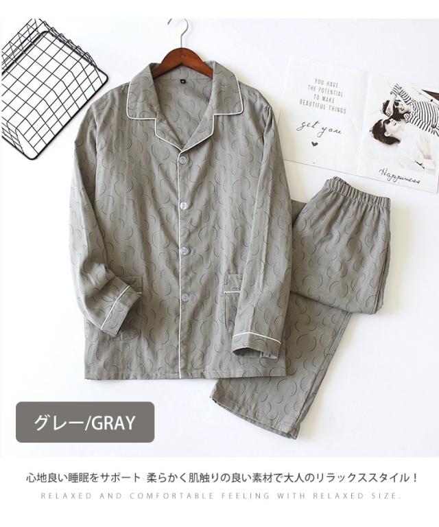 パジャマ メンズ 長袖 綿100% ダブルガーゼ 前開き ガーゼパジャマ 春夏秋冬 ルームウェア メンズパジャマ 長ズボン 入院 コットン パジャマ 父の日2024