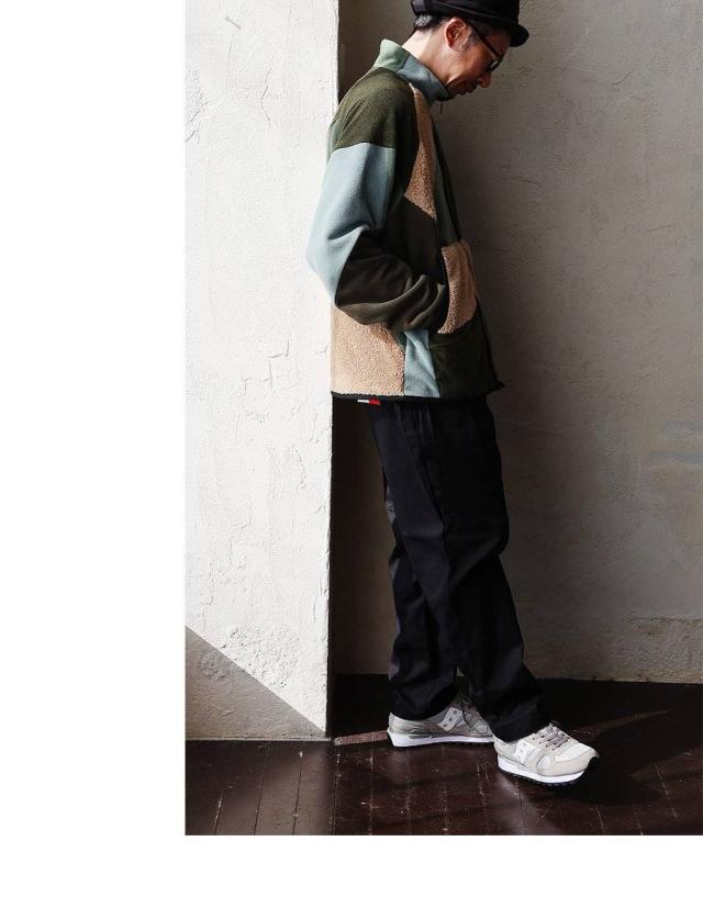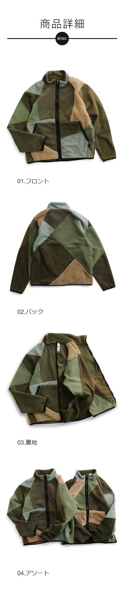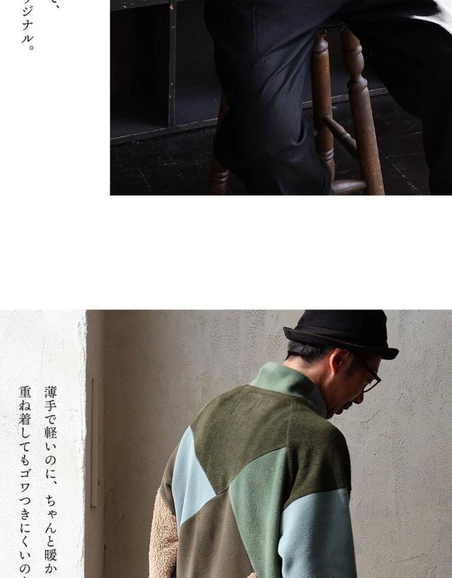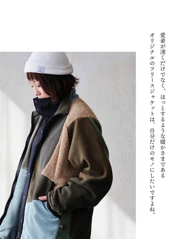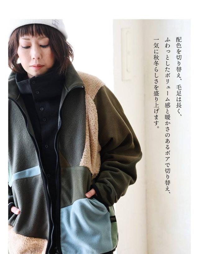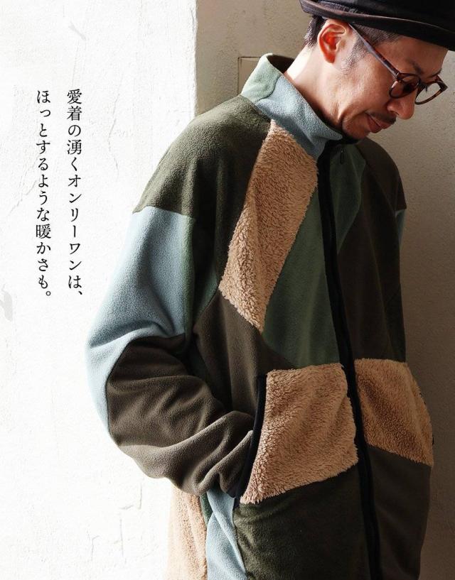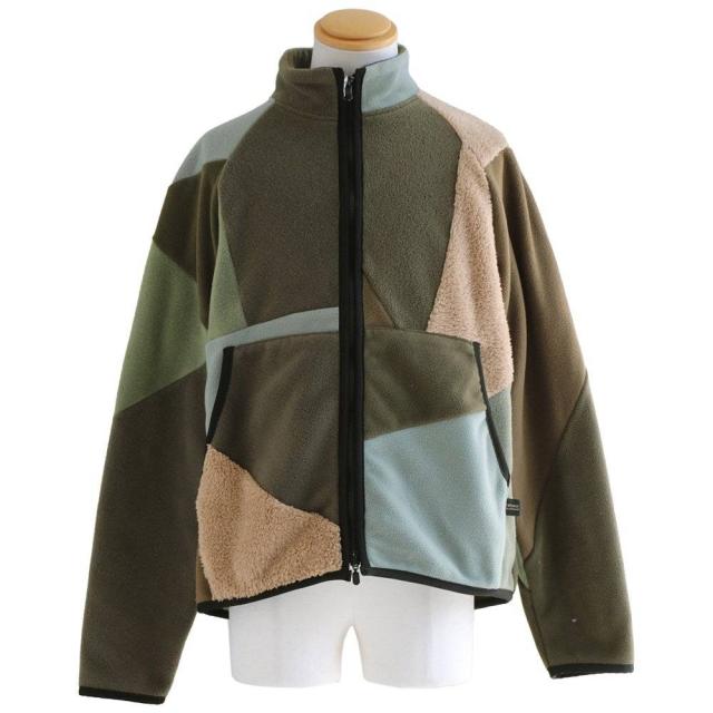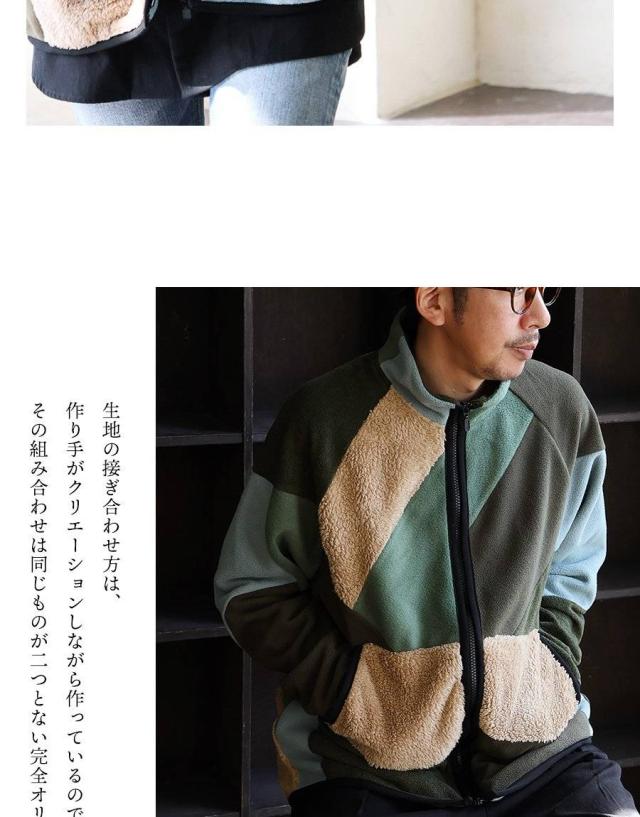 Johnbull ジョンブル ジャケット フリースジャケット 長袖 メンズ レディース ハイネック パッチワーク リメイク フリース ボア ミリタリー 配色切り替え 異素材 軽い 伸縮性 暖かい 保温性 重ね着 大きいサイズ カジュアル 秋 冬 パティ