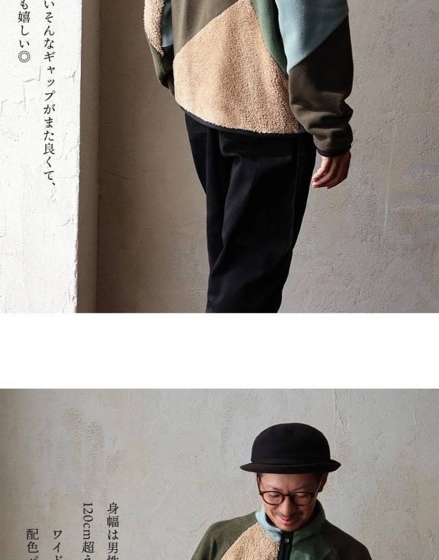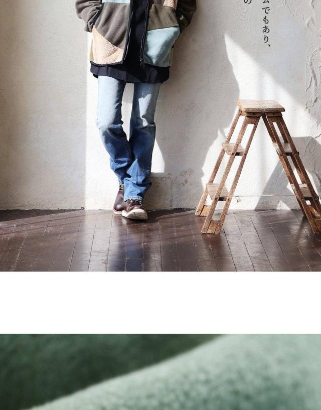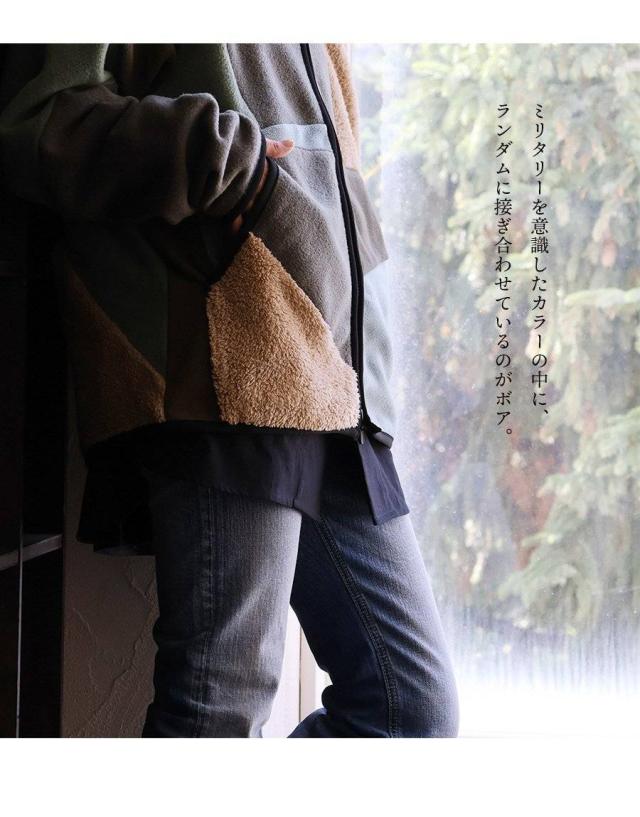 ・ミリタリーを意識したカラーの中に、ランダムに接ぎ合わせているのがボア。