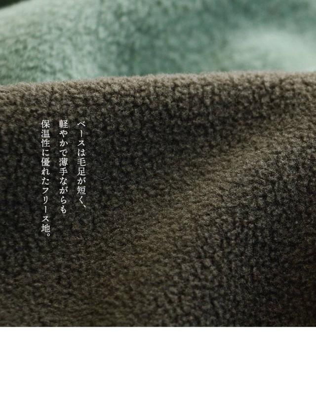 ・ベースは毛足が短く、軽やかで薄手ながらも保温性に優れたフリース地。