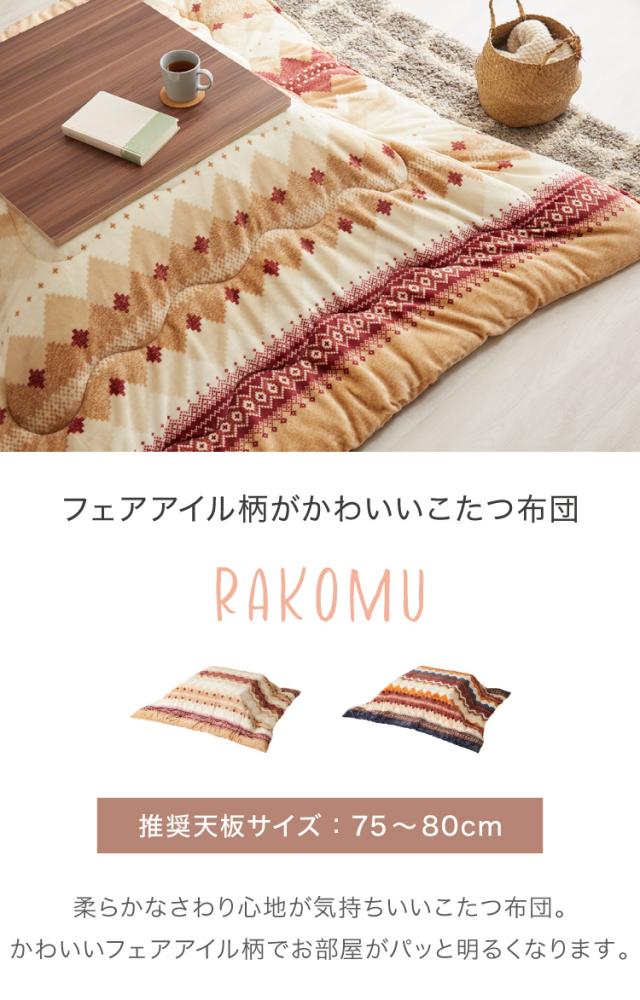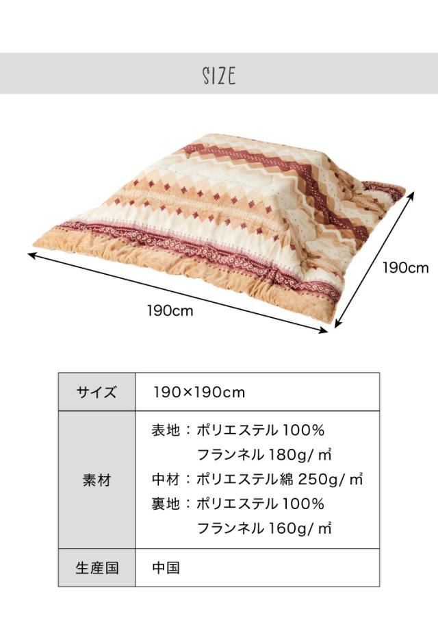 こたつ布団 ラコム 190×190cm 正方形 おしゃれ 薄掛け布団 撥水 洗える 丸洗い フランネル こたつ コタツ 掛布団 あったか 暖かい 清潔 かわいい 北欧 洗濯 布団 こたつ 省エネ 節電 布団(代引不