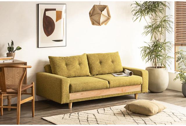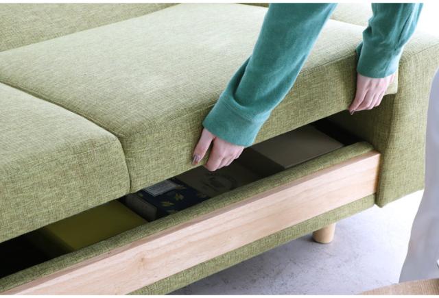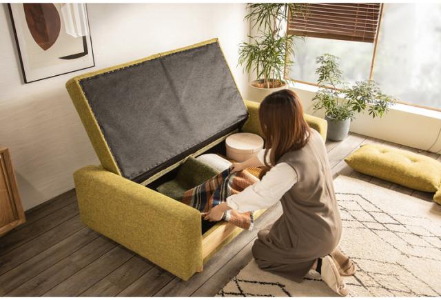 座面の裏に大容量の収納がついたソファベッド。ソファとベッドのダブルの機能を持ちながら大容量の収納まで備えた無敵のアイテム!