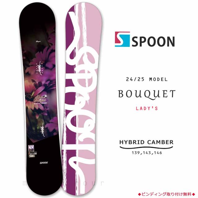 スノーボード 板 レディース 単品 SPOON スプーン グラトリ BOUQUET ハイブリッド キャンバー ボード お洒落 ブランド スノボー 初心者 ブラック パープル