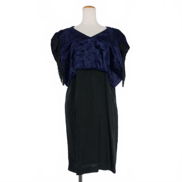 【中古】トーガ TOGA ベロア 切替 フリンジ ワンピース ドレス ノースリーブ ひざ丈 1 黒 紺 ブラック ネイビー