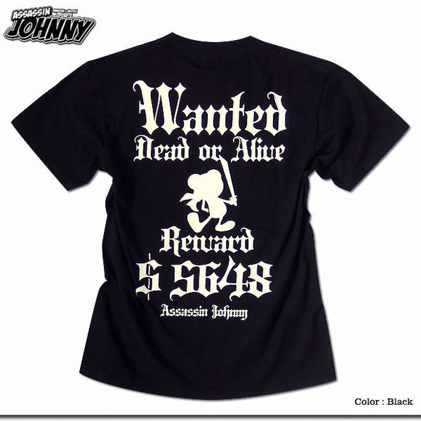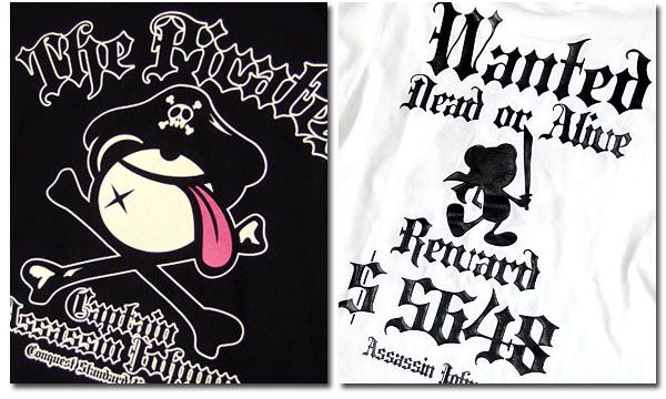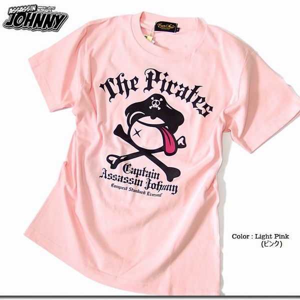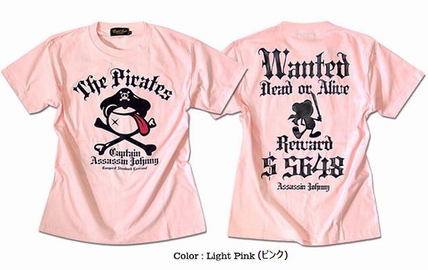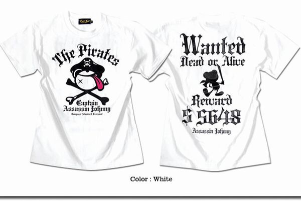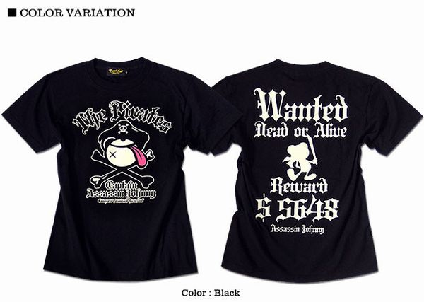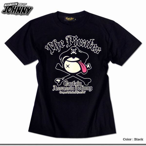 ★海賊旗をイメージしたジョニー君のプリントがクールな殺し屋ジョニープリントTシャツ!バックプリントは厚盛のラバープリントになっており立体感があります!カッコ可愛いデザインで男女問わずオススメの海賊ジョニープリントTシャツです!