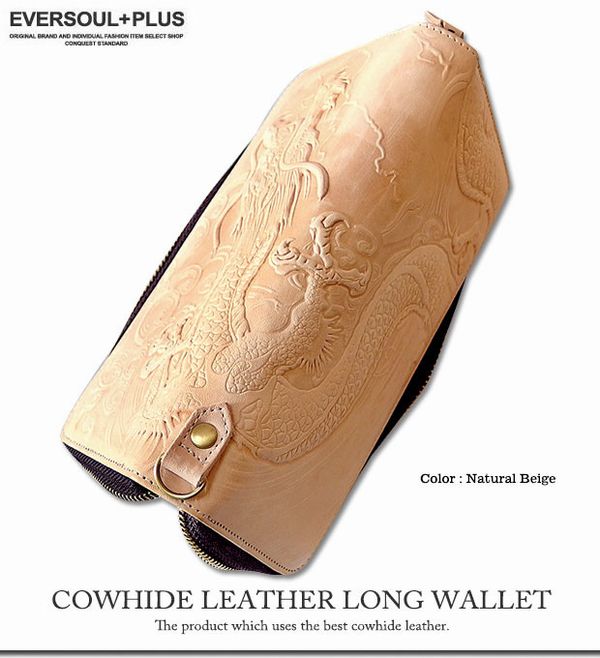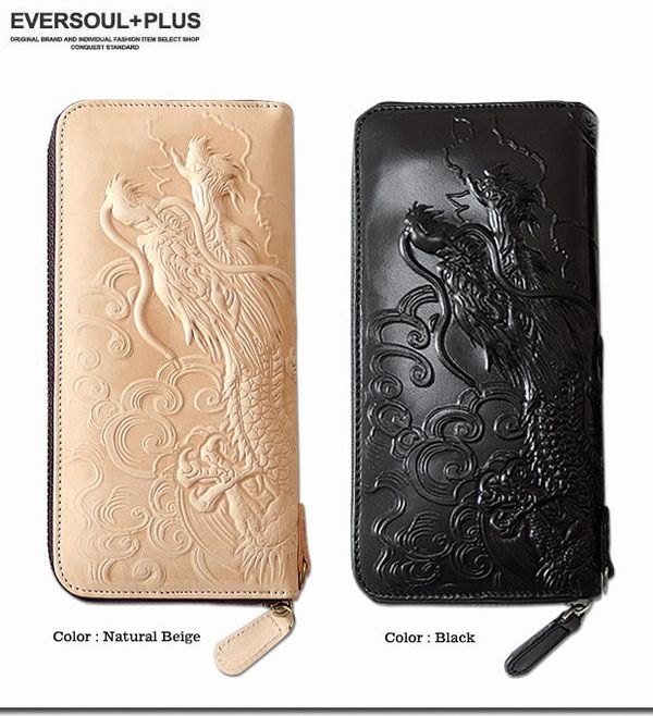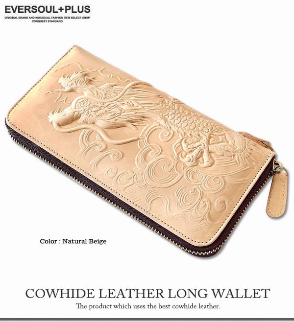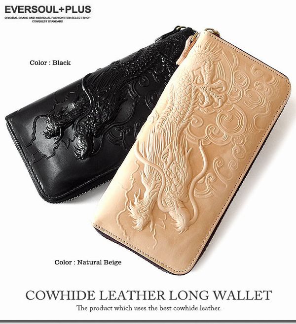 ★本革牛革レザーならではの圧倒的な高級感とエンボス加工のドラゴンが迫力満点のロングウォレット★