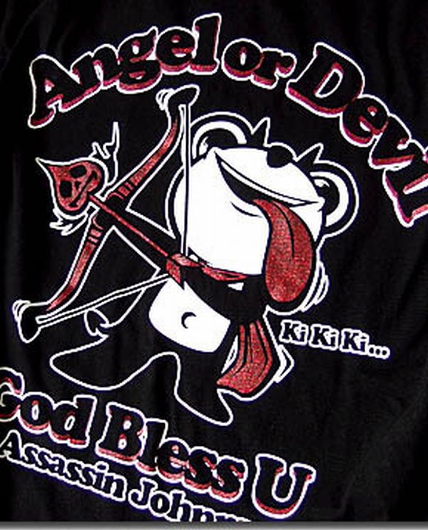 ★天使の様な悪魔の様なキュートなデビルジョニー君のプリントが可愛いラメプリントTシャツ!部分的にラメ入りプリントでキラキラ光ります!カッコ可愛いデザインで男女問わずオススメのデビルジョニープリントTシャツです!