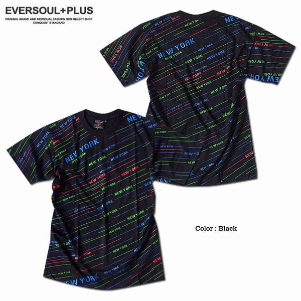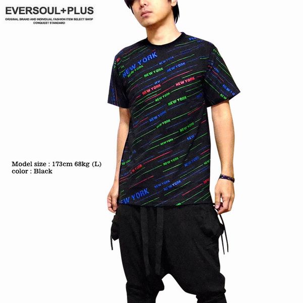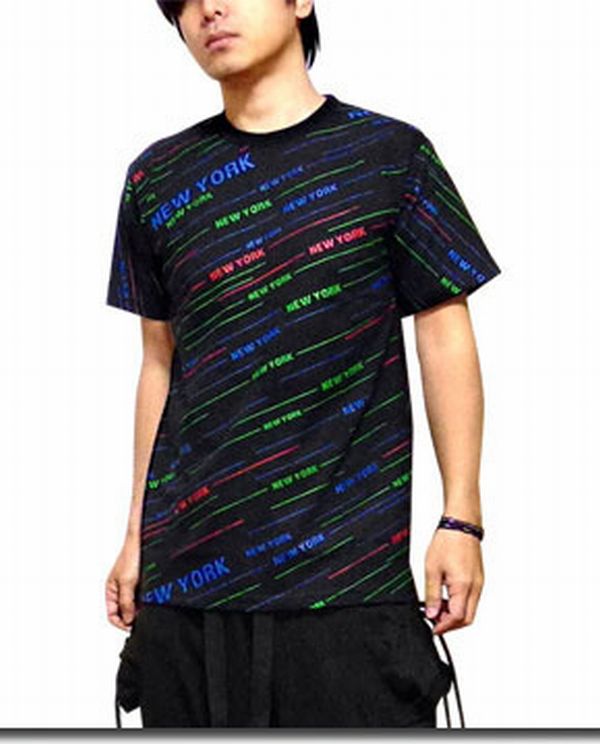 半袖 Tシャツ カットソー トップス メンズファッション ストリートテイスト満点 カラフル NEWYORK ロゴプリント 総柄 プリントTシャツ 【送料無料】
