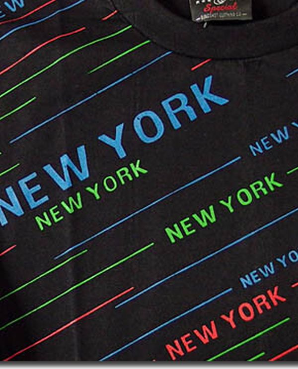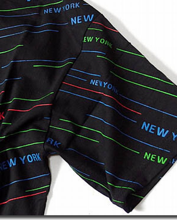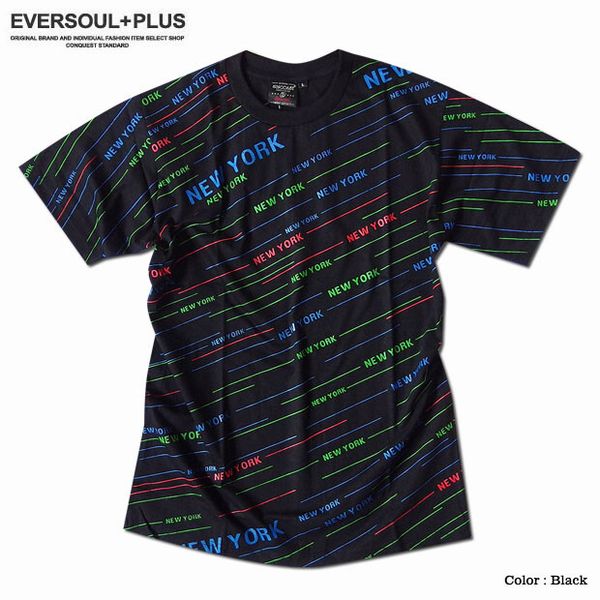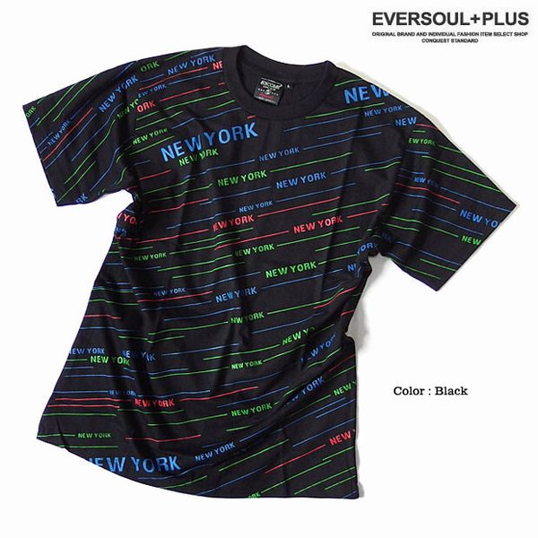 ★カラフルな「NEWYORK」ストライプロゴプリントでストリートテイスト満点の総柄Tシャツ!ダンス衣装にもオススメの総柄プリントTシャツです!■カラフルな「NEWYORK」ロゴ!