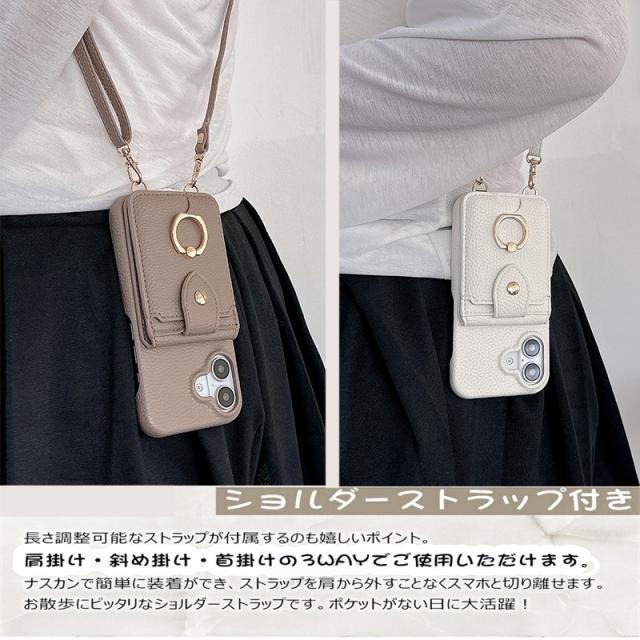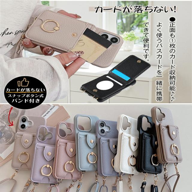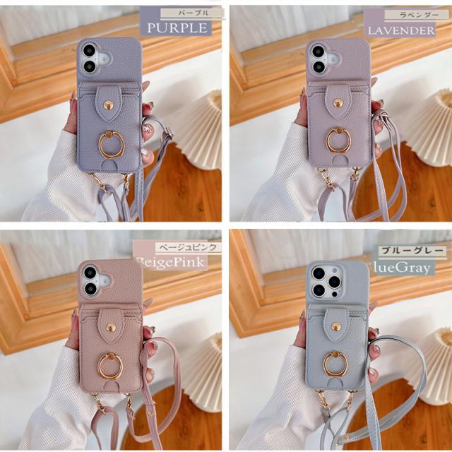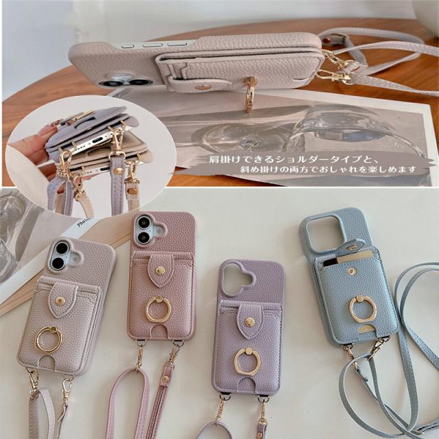 ○ ミラー&リング&ショルダーストラップ&カード収納ポケット付き、大人気のスマホショルダーケースが登場!
